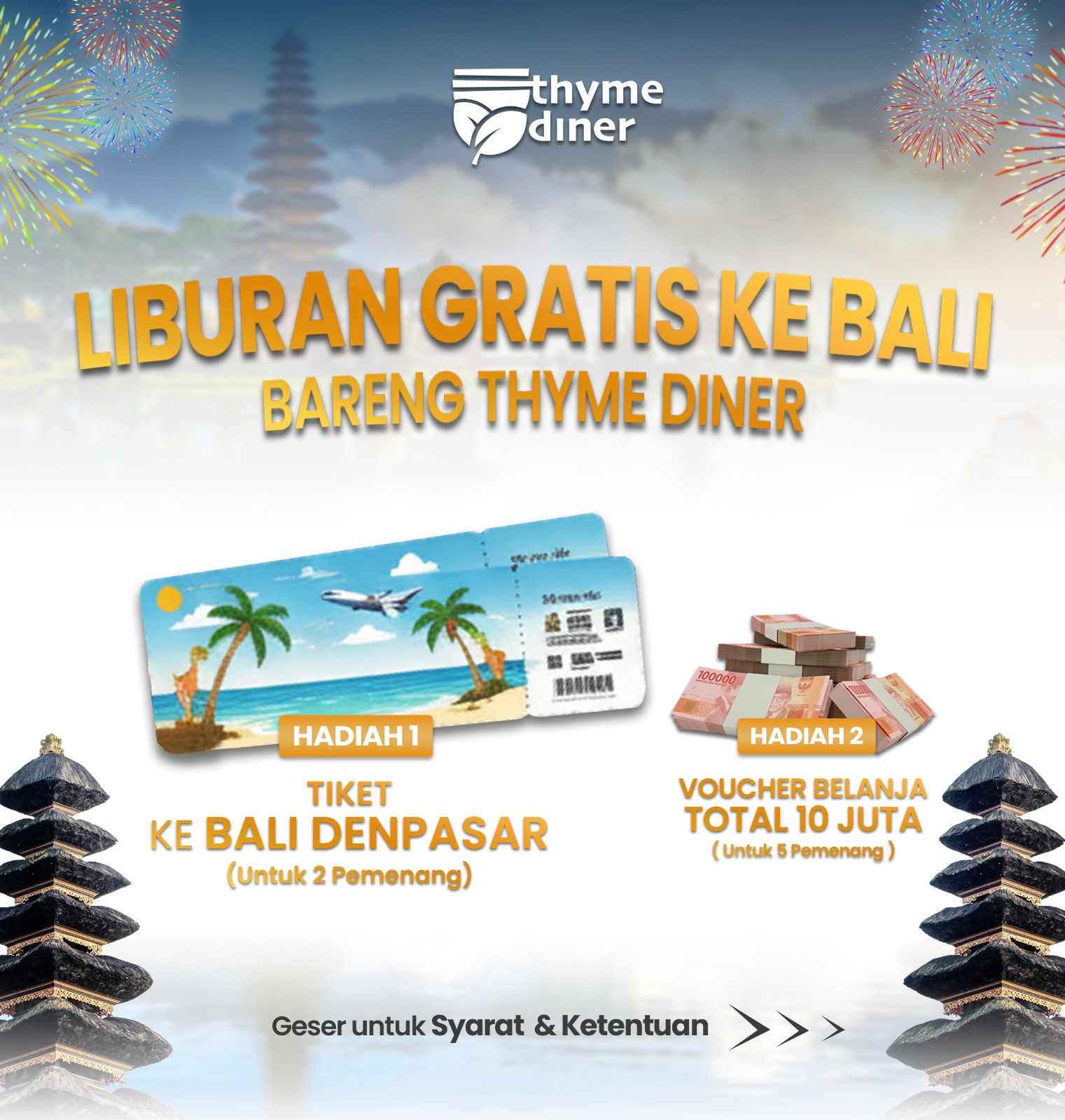 Berawal dari rasa cinta kuliner Nusantara, Thyme Diner restoran dan catering menyediakan mulai dari kudapan manis jajanan tradisional, sate, iga bakar sapi yang harum, nasi goreng khas orang Indonesia sampai rendang Padang juga menu Bali ayam taliwang yang kaya rempah dan aneka sup ikan, semua tersedia sesuai selera Anda.