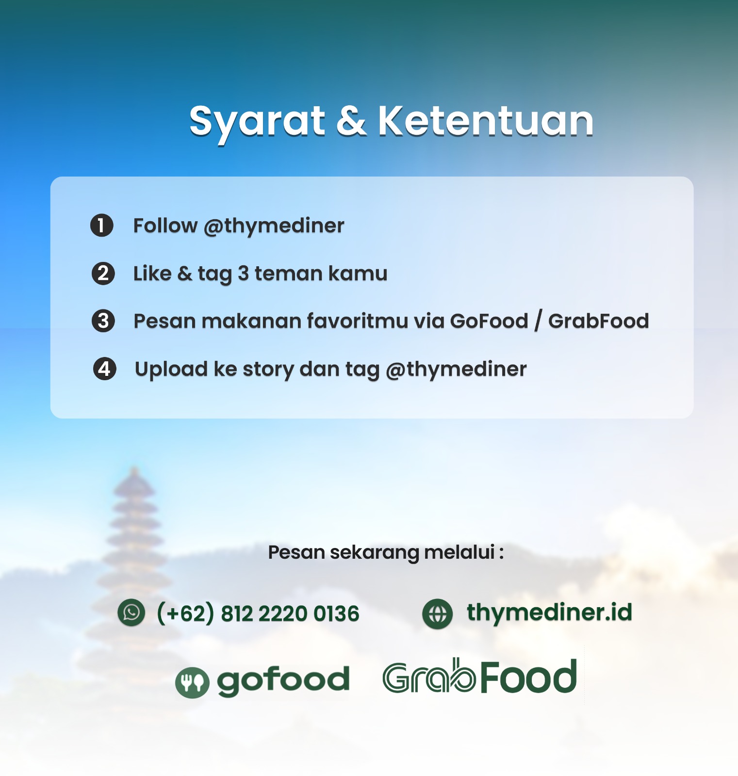 Berikut adalah beberapa informasi penting mengenai pemesanan di Thyme Diner